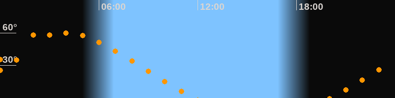 Höchster Stand (Kulmination)03:57 Uhr (h = 59,9°)