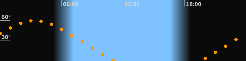 Höchster Stand (Kulmination)03:21 Uhr (h = 59,9°)