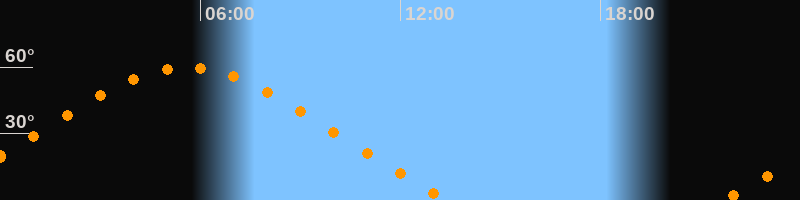 Höchster Stand (Kulmination)05:35 Uhr (h = 59,9°)
