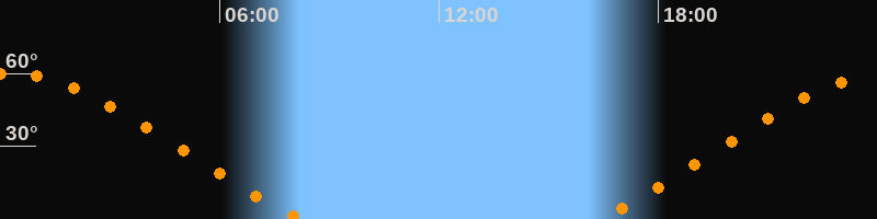 Höchster Stand (Kulmination)00:16 Uhr (h = 59,9°)