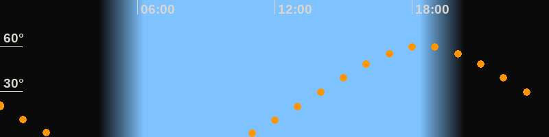 Höchster Stand (Kulmination)18:30 Uhr (h = 59,9°)