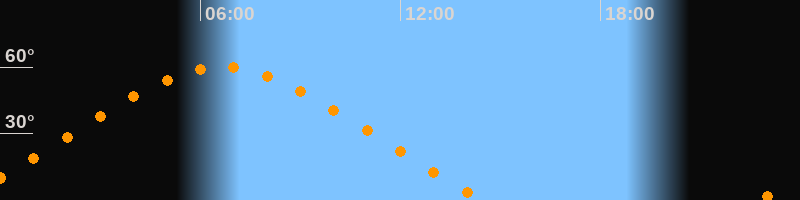 Höchster Stand (Kulmination)06:39 Uhr (h = 59,9°)