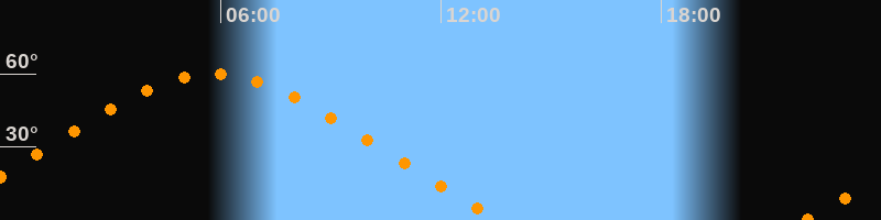 Höchster Stand (Kulmination)05:48 Uhr (h = 59,9°)