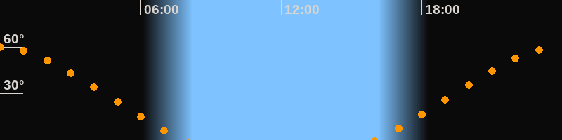 Höchster Stand (Kulmination)23:53 Uhr (h = 59,9°)