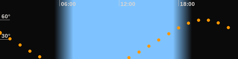 Höchster Stand (Kulmination)20:32 Uhr (h = 59,9°)