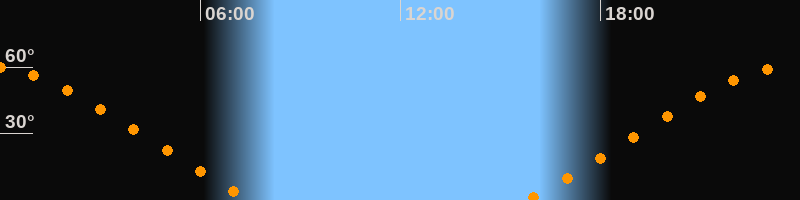 Höchster Stand (Kulmination)23:38 Uhr (h = 59,9°)