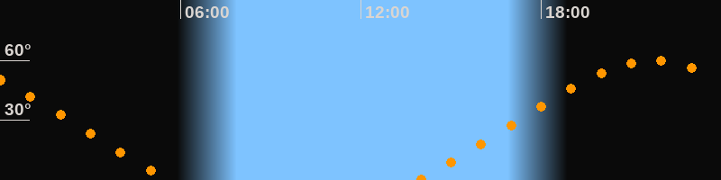 Höchster Stand (Kulmination)21:44 Uhr (h = 59,9°)