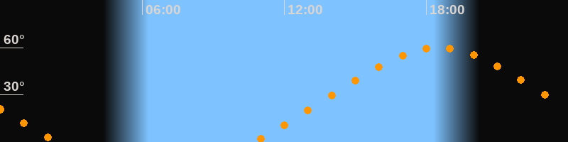 Höchster Stand (Kulmination)18:31 Uhr (h = 59,9°)