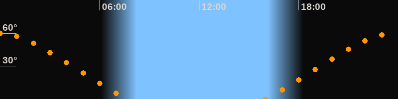 Höchster Stand (Kulmination)23:47 Uhr (h = 59,9°)
