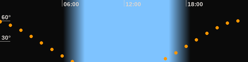 Höchster Stand (Kulmination)23:13 Uhr (h = 59,9°)