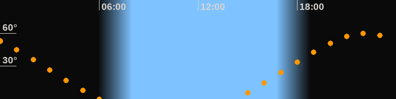Höchster Stand (Kulmination)22:06 Uhr (h = 59,9°)