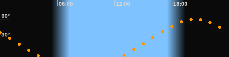 Höchster Stand (Kulmination)20:23 Uhr (h = 59,9°)