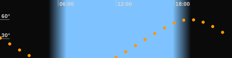 Höchster Stand (Kulmination)19:36 Uhr (h = 59,9°)