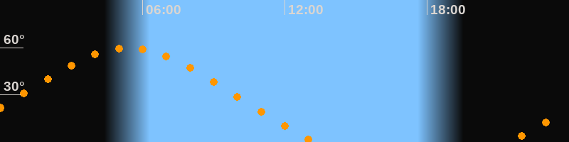 Höchster Stand (Kulmination)05:23 Uhr (h = 59,9°)