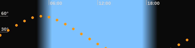 Höchster Stand (Kulmination)05:07 Uhr (h = 59,9°)
