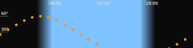 Höchster Stand (Kulmination)04:59 Uhr (h = 59,9°)