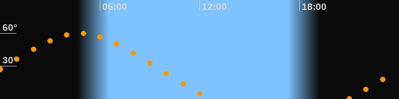 Höchster Stand (Kulmination)04:48 Uhr (h = 59,9°)