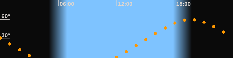 Höchster Stand (Kulmination)19:37 Uhr (h = 59,9°)
