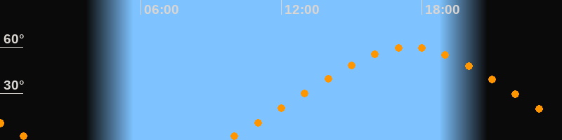 Höchster Stand (Kulmination)17:27 Uhr (h = 59,9°)