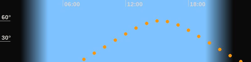 Höchster Stand (Kulmination)15:18 Uhr (h = 59,9°)