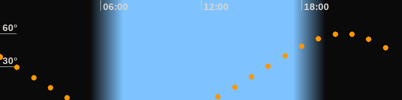 Höchster Stand (Kulmination)20:25 Uhr (h = 59,9°)