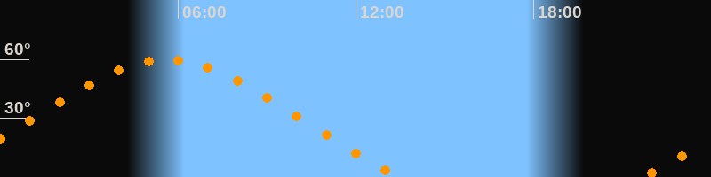Höchster Stand (Kulmination)05:37 Uhr (h = 59,9°)