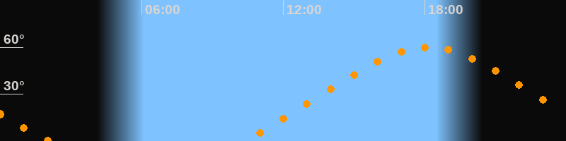 Höchster Stand (Kulmination)18:09 Uhr (h = 59,9°)