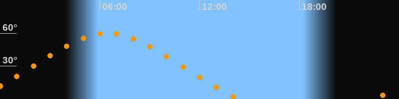 Höchster Stand (Kulmination)06:27 Uhr (h = 59,9°)