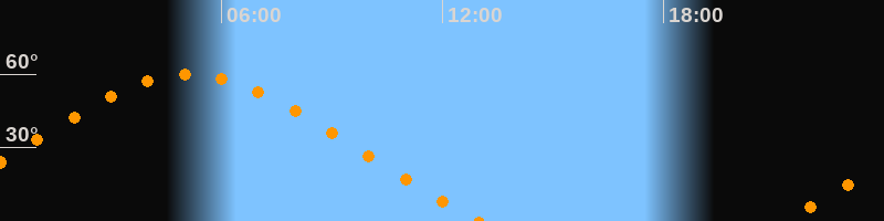 Höchster Stand (Kulmination)05:08 Uhr (h = 59,9°)