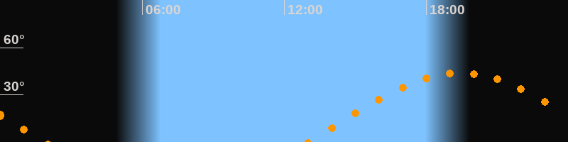 | Höchster Stand (Kulmination) | 19:24 Uhr (h = 44°) |