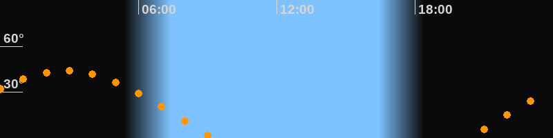 | Höchster Stand (Kulmination) | 02:50 Uhr (h = 44°) |