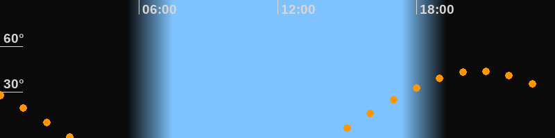 | Aufgang | 14:14 Uhr im Osten (αAz = 81,8°) |