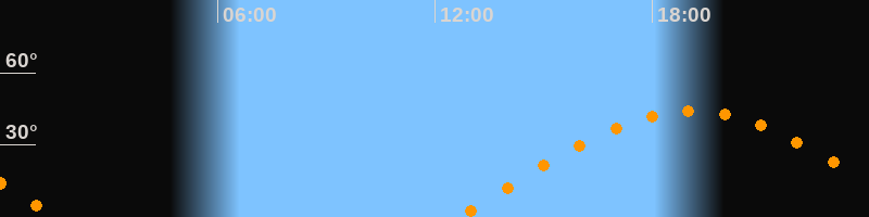 | Höchster Stand (Kulmination) | 19:05 Uhr (h = 44°) |