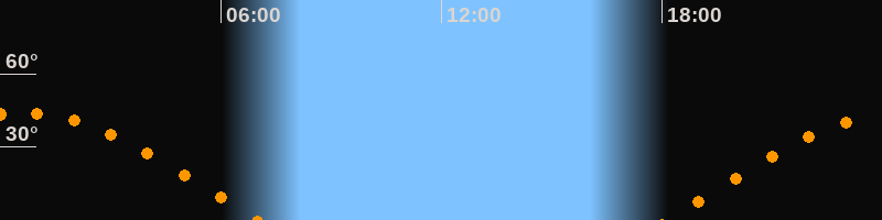 | Aufgang | 18:06 Uhr im Osten (αAz = 81,8°) |