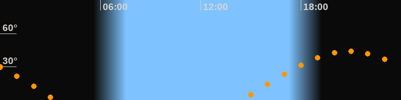 | Aufgang | 14:26 Uhr im Osten (αAz = 81,8°) |
