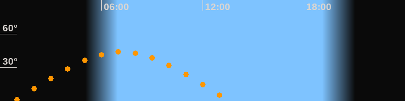 | Höchster Stand (Kulmination) | 07:12 Uhr (h = 44°) |