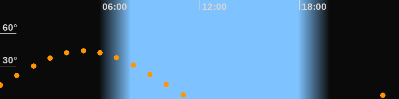 | Höchster Stand (Kulmination) | 05:03 Uhr (h = 44°) |