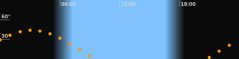 | Höchster Stand (Kulmination) | 03:09 Uhr (h = 44°) |