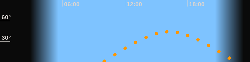 | Höchster Stand (Kulmination) | 16:13 Uhr (h = 44°) |