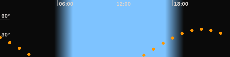 | Aufgang | 14:36 Uhr im Osten (αAz = 81,8°) |