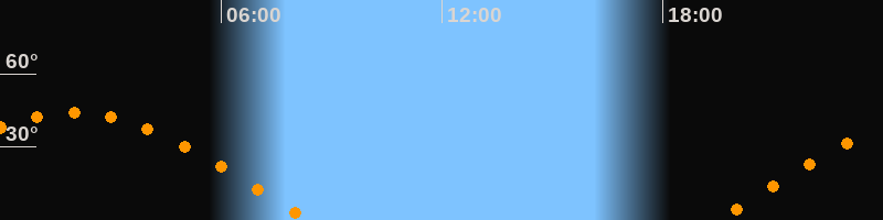 | Aufgang | 19:28 Uhr im Osten (αAz = 81,8°) |