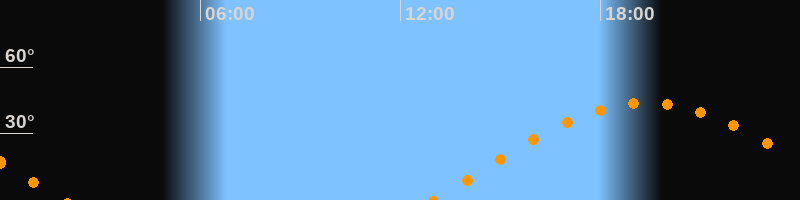 | Aufgang | 12:58 Uhr im Osten (αAz = 81,8°) |