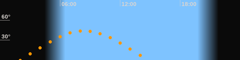 | Höchster Stand (Kulmination) | 08:23 Uhr (h = 44°) |