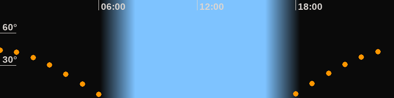 | Aufgang | 17:29 Uhr im Osten (αAz = 81,8°) |