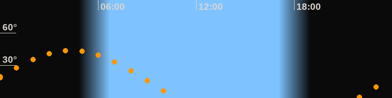 | Untergang | 10:46 Uhr im Westen (αAz = 278,2°) |