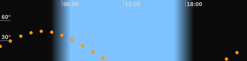 | Höchster Stand (Kulmination) | 04:05 Uhr (h = 44°) |