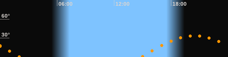 Höchster Stand (Kulmination)20:26 Uhr (h = 33,6°)
