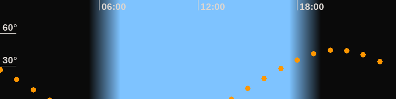 | Aufgang | 13:55 Uhr im Osten (αAz = 80,7°) |