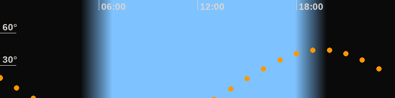 | Höchster Stand (Kulmination) | 19:30 Uhr (h = 44,7°) |