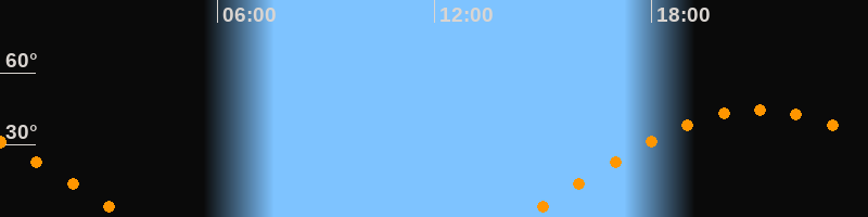| Aufgang | 14:29 Uhr im Osten (αAz = 80,7°) |
